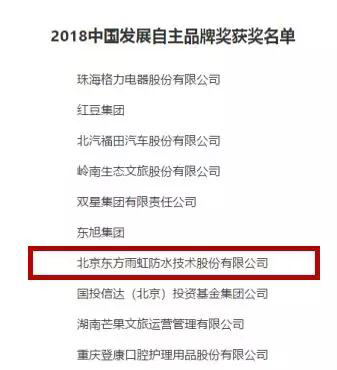 日前,由中國(guó)發(fā)展網(wǎng)主辦、中國(guó)發(fā)展研究院承辦的第四屆“發(fā)展中國(guó)”年度盛典在京舉行。盛典上頒布了包括十大改革創(chuàng)新人物在內(nèi)的多個(gè)獎(jiǎng)項(xiàng),東方雨虹與格力電器、雙星集團(tuán)等企業(yè)一道榮獲2018中國(guó)發(fā)展自主品牌獎(jiǎng)。