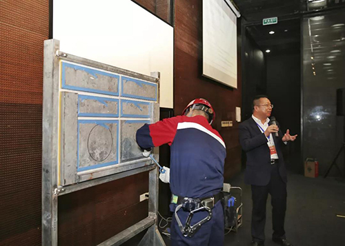 東方雨虹MS膠支持服務(wù)平臺總監(jiān)朱衛(wèi)如從裝配式建筑對防水密封膠的要求入手,對幾種密封膠的性能差異進(jìn)行了分析,通過大量實(shí)驗(yàn)數(shù)據(jù)證明MS密封膠滿足裝配式建筑防水密封需求的性能優(yōu)勢,并詳細(xì)介紹了東方雨虹以MS改性硅酮防水密封膠為核心的裝配式建筑防水密封系統(tǒng)。朱衛(wèi)如連同擁有豐富施工經(jīng)驗(yàn)的施工工人劉紀(jì)松進(jìn)行了現(xiàn)場標(biāo)準(zhǔn)化施工演示,為參會人員充分展示了MS改性硅酮防水密封膠在裝配式建筑防水密封系統(tǒng)的應(yīng)用。