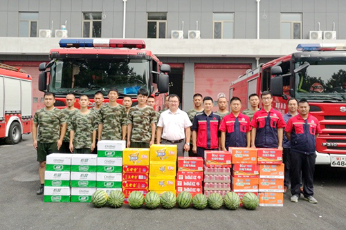 8月1日上午,東方雨虹北京生產(chǎn)基地副廠長于杰一行來到楊鎮(zhèn)消防中隊(duì)慰問消防官兵,并送上清涼解暑慰問品。