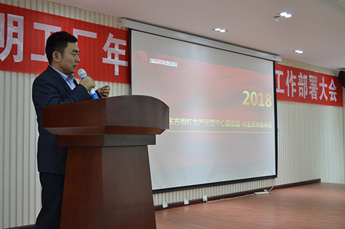陸殿富先生作重要講話,他首先肯定了昆明生產(chǎn)基地在過去一年的變化與成長,隨后他要求生產(chǎn)基地全體人員要加強(qiáng)學(xué)習(xí),夯實(shí)各崗位的本領(lǐng),2018年昆明生產(chǎn)基地肩負(fù)重任,要從"產(chǎn)品質(zhì)量、成本管控、創(chuàng)新與成果"等方面進(jìn)行全面部署,希望生產(chǎn)基地全體員工腳踏實(shí)地,努力進(jìn)取,在2018年實(shí)現(xiàn)全面超越自我。