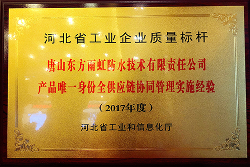 12月15日,2017年河北省工業(yè)企業(yè)質(zhì)量品牌建設經(jīng)驗交流會在石家莊召開。河北省工業(yè)和信息化廳公布2017年河北省質(zhì)量標桿名單,“唐山東方雨虹防水技術有限責任公司產(chǎn)品唯一身份全供應鏈協(xié)同管理實施經(jīng)驗”光榮入選。廠長馬到原到場領獎并做現(xiàn)場匯報,與參會各企業(yè)進行質(zhì)量標桿典型經(jīng)驗交流。