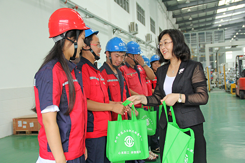 慰問團(tuán)一行看望了徐州臥牛山卷材二車間的生產(chǎn)者,參觀了無胎改性瀝青防水卷材的生產(chǎn)過程;接著,聽取了廠長(zhǎng)徐庭忠關(guān)于發(fā)放藥品、配備冰柜、定時(shí)供應(yīng)綠豆湯等防暑降溫福利配發(fā)情況的詳細(xì)報(bào)告。