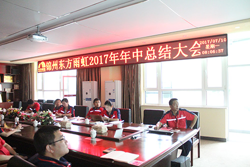 7月10日,錦州東方雨虹召開(kāi)2017年上半年工作總結(jié)會(huì)議。廠長(zhǎng)許朝暉主持會(huì)議并講話(huà),各部門(mén)負(fù)責(zé)人參加了此次會(huì)議。 廠長(zhǎng)許朝暉首先對(duì)生產(chǎn)基地上半年的生產(chǎn)運(yùn)營(yíng)情況進(jìn)行了總結(jié)匯報(bào),并強(qiáng)調(diào)安全生產(chǎn)是重中之重,同時(shí)分析了上半年工作中存在的不足,指出下半年工作思路。