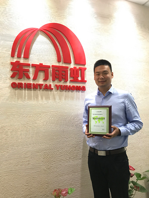 在上午舉行的朗詩綠建論壇上,韓晨磊向在座嘉賓分享了針對朗詩綠色建筑特別開發(fā)的“零甲醛室內(nèi)防水涂料”,從標(biāo)準(zhǔn)的制定、產(chǎn)品的研發(fā)、進(jìn)口供應(yīng)商配合、現(xiàn)代化工廠生產(chǎn)、專業(yè)的物流配送系統(tǒng)等五方面進(jìn)行了介紹。東方雨虹為朗詩的“零甲醛”標(biāo)準(zhǔn)項目提供了按時保質(zhì)的產(chǎn)品服務(wù),得到了朗詩集團(tuán)高度評價。 在接下來的感謝優(yōu)秀合作伙伴環(huán)節(jié),東方雨虹被授予“優(yōu)秀供應(yīng)商”稱號,朗詩地產(chǎn)產(chǎn)品質(zhì)量中心結(jié)構(gòu)總工程師宋新風(fēng)先生和朗詩綠建研發(fā)基地總經(jīng)理王長山先生對東方雨虹的產(chǎn)品質(zhì)量以及配套的服務(wù)體系給予了肯定和贊揚。