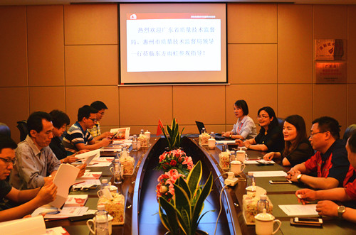 4月20日下午,廣東省質(zhì)量技術(shù)監(jiān)督局行審處長(zhǎng)阮忠、審查中心主任陳靜香、行審處主任科員黎明、審查中心辦公室主任張聰,惠州市質(zhì)量技術(shù)監(jiān)督局行政審批科科長(zhǎng)高美云及副科長(zhǎng)陳本聰一行六人考察東方雨虹惠州生產(chǎn)基地。 東方雨虹廣東公司常務(wù)副總經(jīng)理孫福琴、惠州生產(chǎn)基地廠長(zhǎng)趙海濤陪同考察團(tuán)參觀了生產(chǎn)基地涂料車間、卷材車間和成品倉(cāng)儲(chǔ),期間,趙海濤對(duì)公司產(chǎn)品體系、產(chǎn)能情況及生產(chǎn)線發(fā)展進(jìn)行了全面講解。