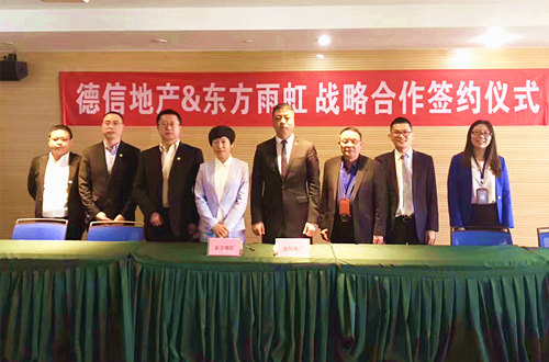 德信集團(tuán)歷經(jīng)二十三年潛心發(fā)展,目前已形成以房地產(chǎn)開發(fā)為主業(yè),金融、文旅、創(chuàng)投、現(xiàn)代服務(wù)等強(qiáng)強(qiáng)聯(lián)動(dòng)的產(chǎn)業(yè)格局,是一家泛房地產(chǎn)全產(chǎn)業(yè)鏈整合服務(wù)跨國(guó)集團(tuán)。旗下控股子公司超過40家,總部設(shè)在中國(guó)杭州,員工超過五千名。德信集團(tuán)深耕長(zhǎng)三角,布局全國(guó)重點(diǎn)城市,產(chǎn)品覆蓋多種業(yè)態(tài);多年來(lái),贏得了社會(huì)各界廣泛贊譽(yù),連續(xù)10年被評(píng)為“浙江省優(yōu)秀房地產(chǎn)企業(yè)”,連續(xù)10年蟬聯(lián)杭州政府授予的“企業(yè)先進(jìn)單位稱號(hào)”,為中國(guó)房地產(chǎn)行業(yè)信用AAA級(jí)企業(yè)。 此次雙方簽署戰(zhàn)略合作協(xié)議,實(shí)現(xiàn)東方雨虹浙江地區(qū)又一百?gòu)?qiáng)地產(chǎn)的強(qiáng)強(qiáng)聯(lián)合,東方雨虹將秉承創(chuàng)新、合作、共贏的理念,助力德信集團(tuán)進(jìn)一步發(fā)展,共同打造高品質(zhì)工程。