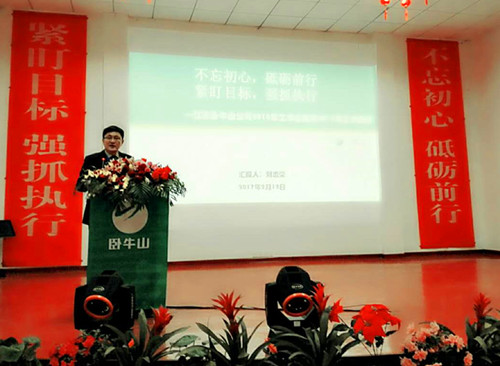 會議首先由臥牛山公司董事長、總經(jīng)理劉志榮作“不忘初心、砥礪前行,緊盯目標(biāo)、強抓執(zhí)行”主題報告。他從銷售、工程管理、市場、人力資源、技術(shù)、財務(wù)風(fēng)險等板塊全面深刻地回顧和分析了2016年公司整體經(jīng)營情況及存在的問題,為各個板塊明確了2017年的工作方向及實施舉措。