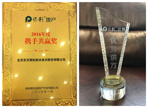 1月12日、13日,由保利江蘇房地產(chǎn)發(fā)展有限公司主辦的“2016工程成本管理中心年度會(huì)議”和保利地產(chǎn)粵東公司舉辦的“保利粵東2016年度供應(yīng)商大會(huì)”分別在江蘇和東莞召開(kāi)。東方雨虹憑借過(guò)硬的綜合實(shí)力喜獲保利地產(chǎn)年度合作“優(yōu)秀供方”“2016年攜手共贏”榮譽(yù)稱號(hào)。