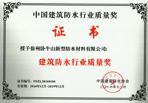 徐州臥牛山榮獲“建筑防水行業(yè)質(zhì)量獎”