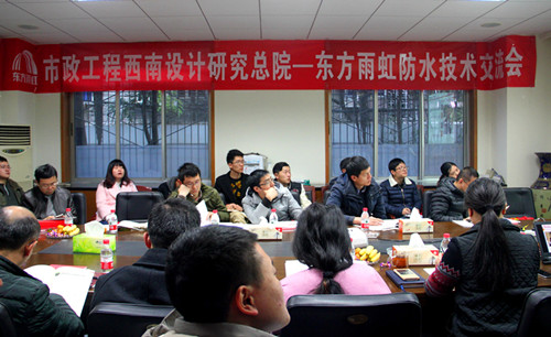 11月25日,四川東方雨虹受邀走進(jìn)市政工程西南設(shè)計(jì)研究總院,與到場(chǎng)近五十名設(shè)計(jì)師開展技術(shù)交流,雙方圍繞城市地下綜合管廊防水工程設(shè)計(jì)、選材、施工等方面的難點(diǎn)、熱點(diǎn)深入探討。 下午兩點(diǎn)半,交流會(huì)正式開始,四川東方雨虹總工程師郭曉樂作了題為“城市綜合管廊防水工程防水材料選用與技術(shù)”的分享。他首先簡(jiǎn)要介紹了綜合管廊相關(guān)政策及防水工程質(zhì)量現(xiàn)狀,重點(diǎn)講解綜合管廊防水選材與設(shè)計(jì)要點(diǎn),結(jié)合東方雨虹在綜合管廊領(lǐng)域的部分業(yè)績(jī),闡述設(shè)計(jì)方案中主要防水材料如熱塑性聚烯烴(TPO) 高分子防水卷材、非固化橡膠瀝青防水涂料的性能及優(yōu)勢(shì)。交流會(huì)期間,參會(huì)設(shè)計(jì)師就綜合管廊防水方案的設(shè)計(jì)、材料的選擇、細(xì)部節(jié)點(diǎn)的施工難點(diǎn)等問題與四川東方雨虹技術(shù)團(tuán)隊(duì)作了進(jìn)一步交流探討,氣氛熱烈。