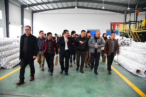 向鋒帶領(lǐng)參觀組參觀卷材生產(chǎn)線