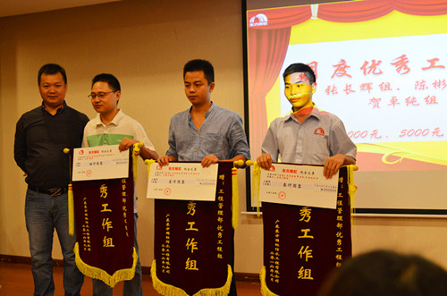 10月22日,以“矢志不移,奮力沖刺”為主題的廣東東方雨虹第三季度業(yè)務(wù)&工程表彰動員大會在涵天酒店舉行。廣東東方雨虹常務(wù)副總經(jīng)理孫福琴、總工程師周子鵠、總經(jīng)理助理張舜苗、總經(jīng)理助理王超以及業(yè)務(wù)系統(tǒng)、工程系統(tǒng)共計100多名員工出席了此次會議。 為及時表彰績優(yōu)者,增強員工、團隊榮譽感,傳遞正能量,本次會議頒發(fā)了業(yè)務(wù)系統(tǒng)優(yōu)秀銷售團隊獎、維護獎、開拓精英獎及工程系統(tǒng)優(yōu)秀工程組獎、施工管理精英獎、施工回款獎等6個獎項,共計4個優(yōu)秀團隊、6位員工獲得了獎勵。會上,常務(wù)副總經(jīng)理孫福琴和總工程師周子鵠結(jié)合表彰情況作動員發(fā)言,表示業(yè)務(wù)工程不分家,兩大系統(tǒng)要換位思考,相互配合,與公司共成長、同發(fā)展。