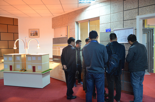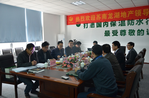2016年3月16日,龍湖集團(tuán)蘇南公司工程部總監(jiān)胡宏偉、招標(biāo)中心負(fù)責(zé)人王德倫、工程管理中心負(fù)責(zé)人黃衛(wèi)軍、工程中心土建經(jīng)理王學(xué)建、研發(fā)經(jīng)理孔蒙一行五人參觀江蘇臥牛山公司,對臥牛山公司的建筑保溫技術(shù)水平及在施工項目進(jìn)行參觀考察。江蘇臥牛山公司董事長、總經(jīng)理劉志榮、總工程師花海東、副總經(jīng)理劉和軍、副總經(jīng)理張建新、副總工程師成時亮負(fù)責(zé)接待并陪同考察。 上午10點(diǎn),蘇南龍湖地產(chǎn)相關(guān)領(lǐng)導(dǎo)一行參觀公司之后,前往技術(shù)中心展廳對公司的技術(shù)水平做更深一步的了解。技術(shù)展廳的考察包括參觀保溫主材樣板、施工樣板、外墻涂料樣板以及建筑保溫系統(tǒng)展示墻等,臥牛山公司總工程師花海東向龍湖地產(chǎn)相關(guān)領(lǐng)導(dǎo)全面介紹了建筑保溫多種系統(tǒng)解決方案。