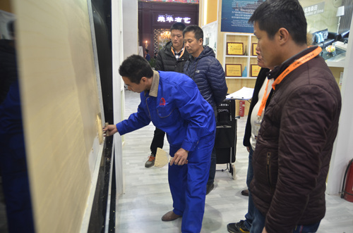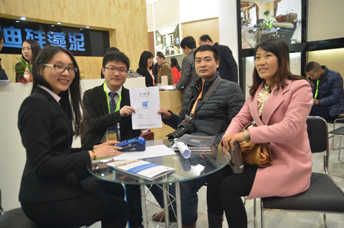 一大早,慕名前來(lái)的客戶就擠滿了洛迪展廳,近距離觀看和感受硅藻泥產(chǎn)品的肌理、質(zhì)感。洛迪硅藻泥產(chǎn)品因其吸附分解甲醛、凈化空氣、調(diào)溫調(diào)濕、防火阻燃、吸音降噪等生態(tài)環(huán)保性能以及各有千秋的樣式、優(yōu)越的品質(zhì)、獨(dú)特的藝術(shù)美感和表現(xiàn)力吸引了不少觀眾流連。 展會(huì)剛開館就成功簽訂了兩家客戶,可謂是旗開得勝,也為此次展會(huì)奠定了成功基調(diào)。展會(huì)第一天,現(xiàn)場(chǎng)不斷傳來(lái)簽約成功的喜訊。