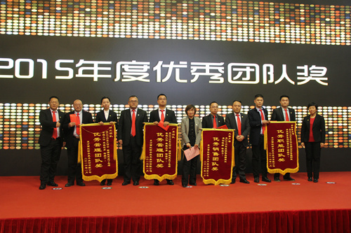 東方雨虹防水集團副總裁、工程渠道事業(yè)部董事長張志萍以《為榮譽而戰(zhàn),為親人而戰(zhàn),我們全力以赴》為題,回顧了工渠事業(yè)部2015年的工作成果,部署2016年發(fā)展規(guī)劃。東方雨虹工渠華東片區(qū)總經理馬秉珠、營銷服務部總經理王玉飛、售后服務部經理常麗君也分別就2015年華東團隊的成功經驗、2015年工渠市場工作方面的成功與不足、2015年售后服務等方面的工作做了經驗分享和匯報。 本次大會表彰了2015年表現突出的優(yōu)秀員工,共設立:突出貢獻獎、優(yōu)秀新人獎、優(yōu)秀員工獎、優(yōu)秀管理員工、優(yōu)秀團隊獎等9項獎項,共計130余人及4個團隊獲獎,現場為他們頒發(fā)了證書及獎金。