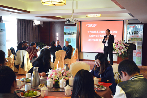 1月20日下午,由云南省防水防腐保溫行業(yè)協(xié)會、昆明風(fēng)行防水材料有限公司主辦的2016年新春專家團拜會,在鼎易大酒店拉開帷幕。來自云南省防水防腐保溫行業(yè)協(xié)會、房地產(chǎn)業(yè)協(xié)會、設(shè)計院、各大型房地產(chǎn)企業(yè)等技術(shù)專家代表近30人參加了此次會議。 會上,省防水防腐保溫行業(yè)協(xié)會秘書長蘇燕女士、原秘書長徐啟常先生依次發(fā)言,表明了云南省建筑防水行業(yè)的新發(fā)展,必須重質(zhì)推優(yōu),必須鑄造精品。房地產(chǎn)業(yè)協(xié)會會長韓慶忠先生、設(shè)計院專家代表周圍先生也陸續(xù)發(fā)言,并對風(fēng)行防水多年來在產(chǎn)品及服務(wù)上的優(yōu)秀品質(zhì)表示了高度贊譽。 隨后,東方雨虹防水集團總裁劉斌先生強調(diào),風(fēng)行防水擁有中國西南地區(qū)規(guī)模龐大、設(shè)備先進的防水卷材生產(chǎn)線及質(zhì)量檢測系統(tǒng),將不斷強化科技創(chuàng)新,在品質(zhì)上深刻鉆研,在質(zhì)量上深度完善,在服務(wù)上不斷提升,堅決致力于成為“中國西南及東南亞富有價值的防水系統(tǒng)服務(wù)商”。