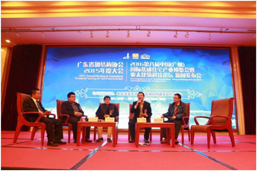 1月14日,廣東省鋼結(jié)構(gòu)協(xié)會(huì)在廣州召開(kāi)“2015年廣東省鋼結(jié)構(gòu)協(xié)會(huì)年度大會(huì)、2016第八屆中國(guó)(廣州)國(guó)際集成住宅產(chǎn)業(yè)博覽會(huì)暨亞太建筑科技論壇新聞發(fā)布會(huì)”,廣東東方雨虹防水工程有限公司應(yīng)邀出席此次會(huì)議。 會(huì)議伊始,廣東鋼結(jié)構(gòu)協(xié)會(huì)副理事長(zhǎng)、華南理工大學(xué)教授蔣正榮先生和廣東鴻威國(guó)際會(huì)展集團(tuán)總裁王登云先生代表主辦方致歡迎辭。在 “2016第八屆中國(guó)(廣州)國(guó)際集成住宅產(chǎn)業(yè)博會(huì)暨亞太建筑科技論壇新聞發(fā)布會(huì)”論壇討論環(huán)節(jié)中,廣東東方雨虹總工程師周子鵠作為防水行業(yè)資深專(zhuān)家,針對(duì)“單層屋面系統(tǒng)技術(shù)在鋼結(jié)構(gòu)建筑如何應(yīng)用”等議題,與行業(yè)內(nèi)其他三位嘉賓共同探討、答疑解惑。作為首先發(fā)言的嘉賓,他對(duì)單層屋面系統(tǒng)技術(shù)做了深入淺出的介紹,并耐心地解答現(xiàn)場(chǎng)嘉賓提出的關(guān)于剛性防水與柔性防水的區(qū)別問(wèn)題。