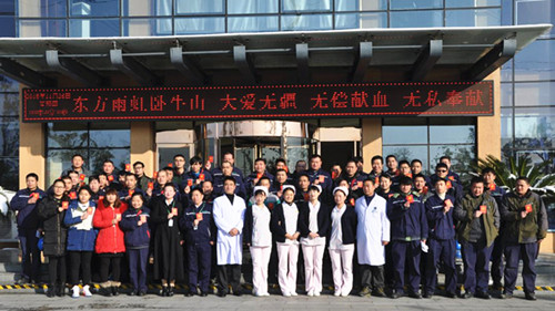 獻(xiàn)血員工與采血站人員合影