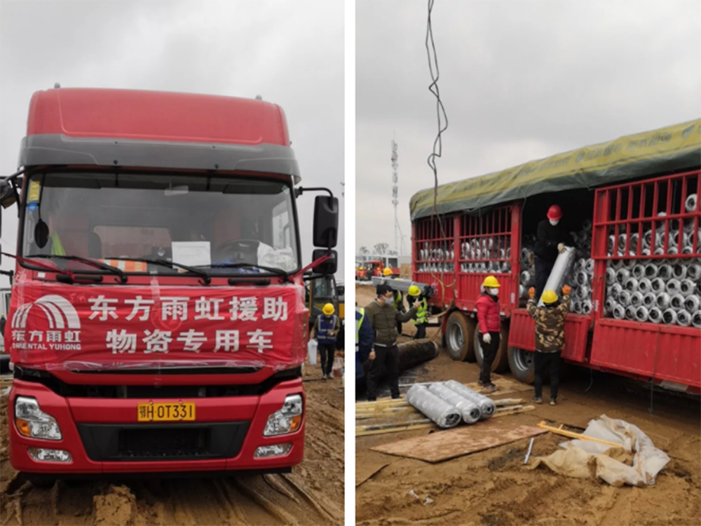 當(dāng)前,湖北地區(qū)物流壓力頗大。但他們?nèi)悦坝暄┨斐霭l(fā),經(jīng)連夜趕路,將東方雨虹馳援物資安全送入武漢雷神山醫(yī)院施工現(xiàn)場。到達(dá)后,更是抓緊一切時(shí)間,立刻組織卸貨、安排施工,爭分奪秒,一絲不茍,最終保質(zhì)保量完成施工任務(wù)。