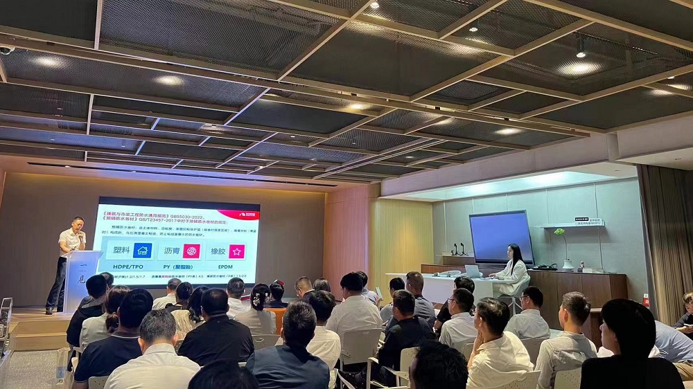 東方雨虹工建集團江蘇公司總工程師徐方賓作《建筑底板防水新材料應用分析》主題分享,他圍繞《建筑與市政工程防水通用規(guī)范》,系統(tǒng)分析底板HDPE、底板R類橡膠卷材、底板PY類瀝青卷材及底板其他類卷材預鋪反粘應用的方案及優(yōu)劣勢。他強調,通過改進防水材料的抗穿刺、抗沖擊等性能及防水施工工法,可以去掉不必要的結構層次,增加防水層的可靠性。