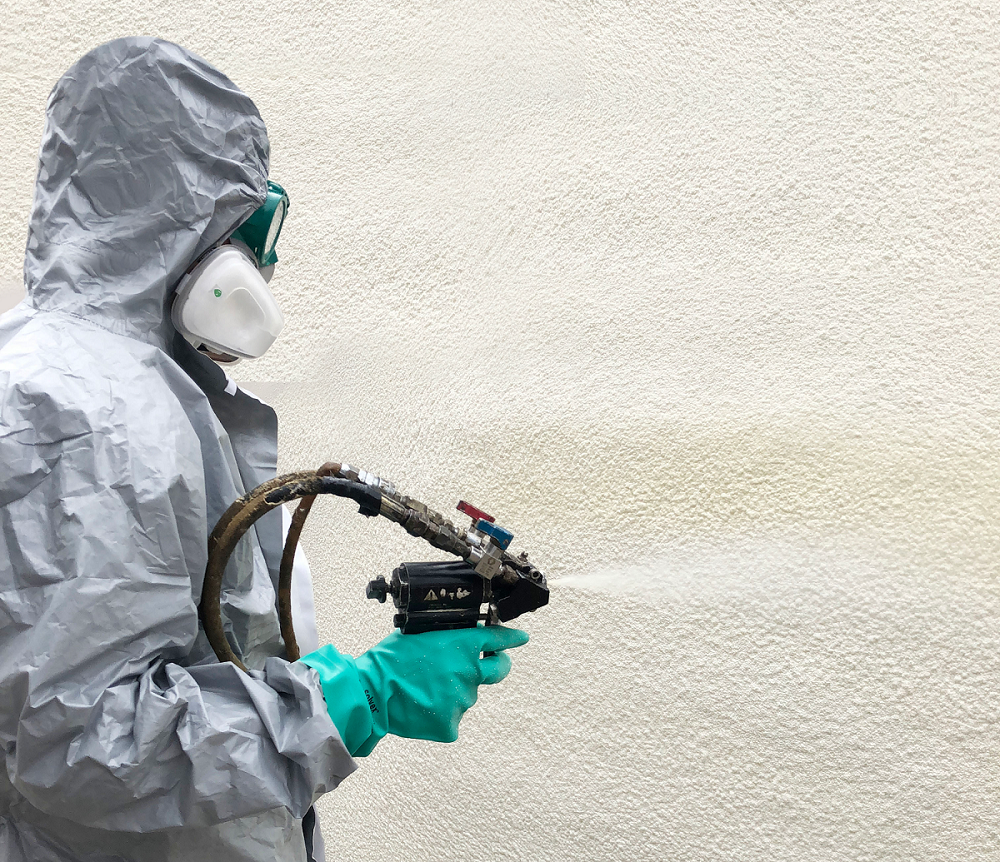 現(xiàn)場噴涂的聚氨酯是100%粘結,無拼縫,與基層結合為一個整體,可與各種材質的基層實現(xiàn)滿粘。而擠塑板、聚苯板是40%點粘。理論上,現(xiàn)場噴涂的粘接強度遠大于擠塑板、聚苯板,沒有空腔,不易形成空鼓,可有效防止保溫層的脫落。