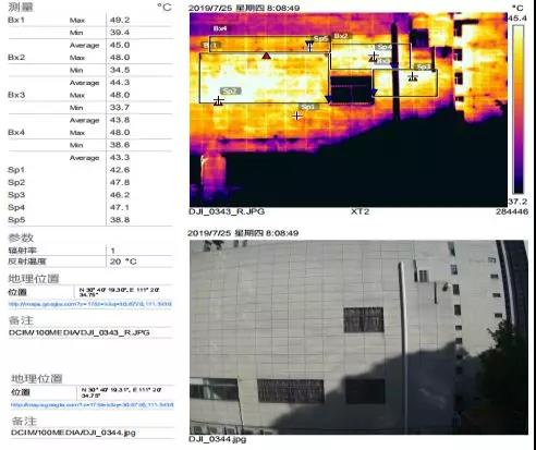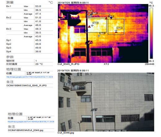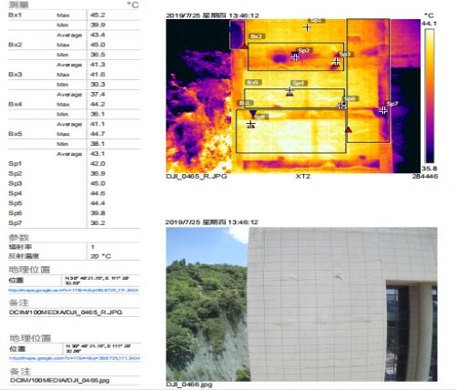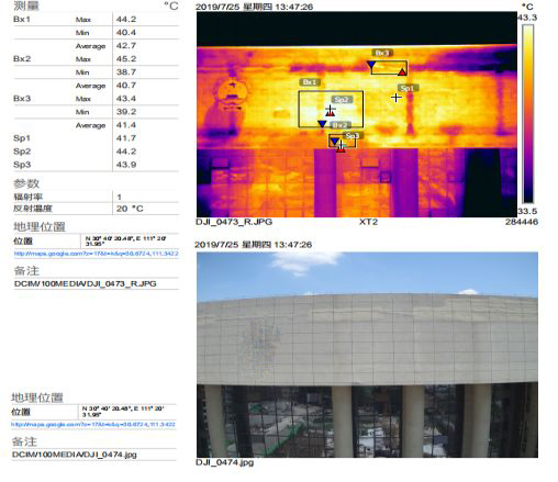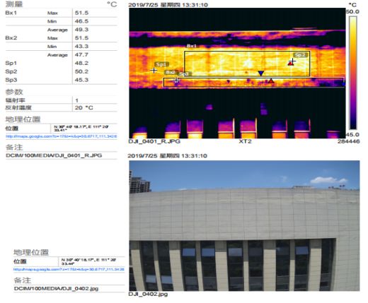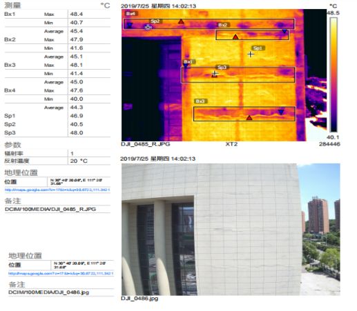 某地區(qū)中級(jí)人民法院外墻無(wú)機(jī)保溫砂漿保溫層出現(xiàn)脫落、滲漏現(xiàn)象,經(jīng)過(guò)勘查檢測(cè)(檢測(cè)設(shè)備為無(wú)人機(jī)搭載紅外熱成像雙光攝像頭),判斷整體外墻目前存在的各類(lèi)缺陷及其嚴(yán)重程度,從而尋找合理、有效的解決方案,解決外墻問(wèn)題,消除外墻帶來(lái)的安全隱患。