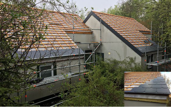 位于比利時(shí)阿登高原(Ardennes)的維爾雅爾姆地區(qū)(Vielsalm)有著大面積的天然森林以及山谷景觀,綠意盎然,空氣清新,是徒步愛好者和自行車愛好者的勝地,因此被稱為比利時(shí)的"綠肺"。為了更好地保護(hù)當(dāng)?shù)刈匀画h(huán)境,該地區(qū)的開發(fā)商對(duì)建筑材料的選用有著高標(biāo)準(zhǔn)的環(huán)保要求,特衛(wèi)強(qiáng)®加強(qiáng)型透汽膜憑借其優(yōu)良的氣密性、耐久性及施工便捷性,參與了該地區(qū)某度假村的350棟別墅項(xiàng)目的屋面翻新工程。