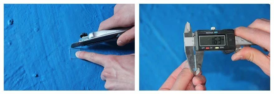 ·同時,用游標(biāo)卡尺或測厚儀測量切塊的防水涂膜厚度;