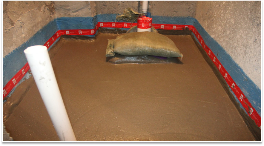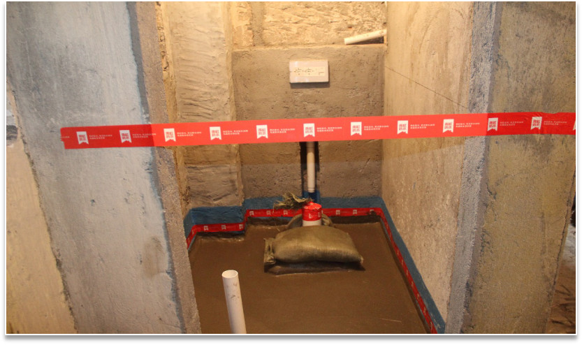 底部防水層檢查:確定完成閉水實(shí)驗(yàn),無滲漏水現(xiàn)象。檢查基層是否平整、干凈、堅(jiān)實(shí)無松動。